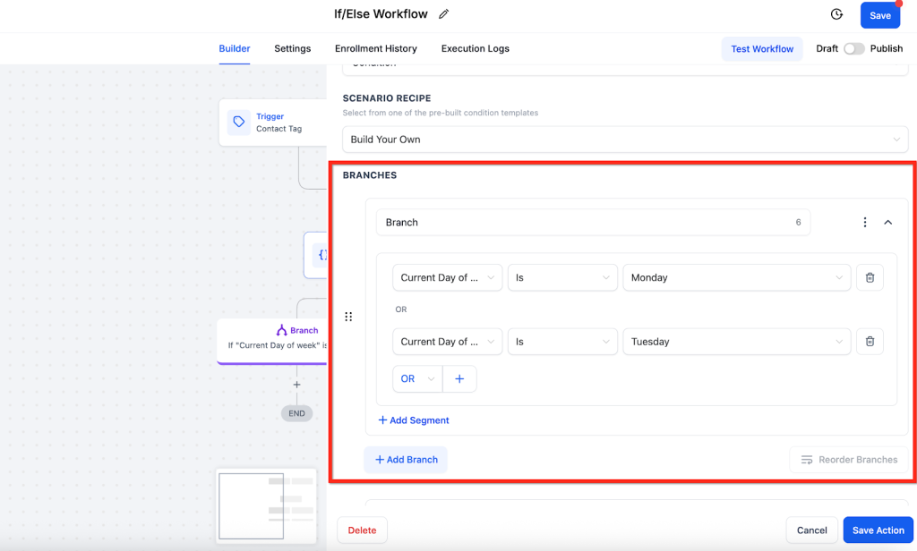 The If/Else action allows you to evaluate contact-specific data and route workflow automation based on whether the contact meets certain criteria. It creates two or more logical branches inside a workflow depending on whether a condition is true or false. his enables you to tailor subsequent actions according to the contact’s engagement or characteristics.