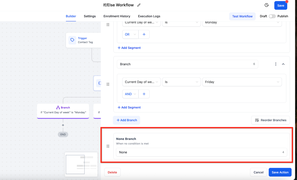 Step 5: Configure the “None” (Else) Branch