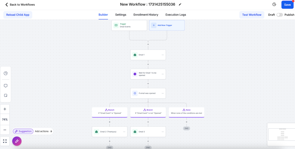 • Trigger: The workflow starts when a promotional email is sent.